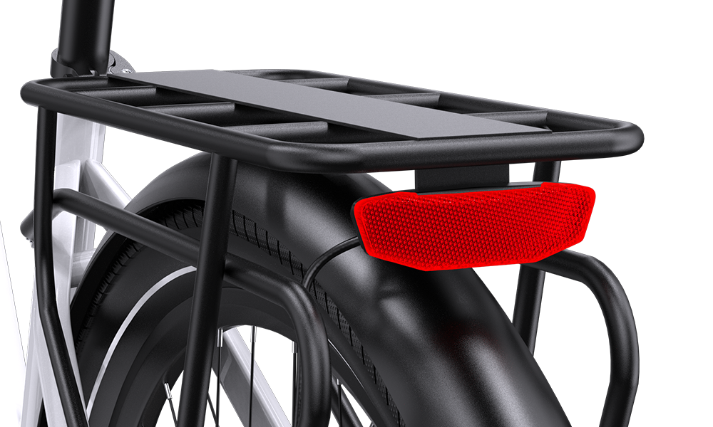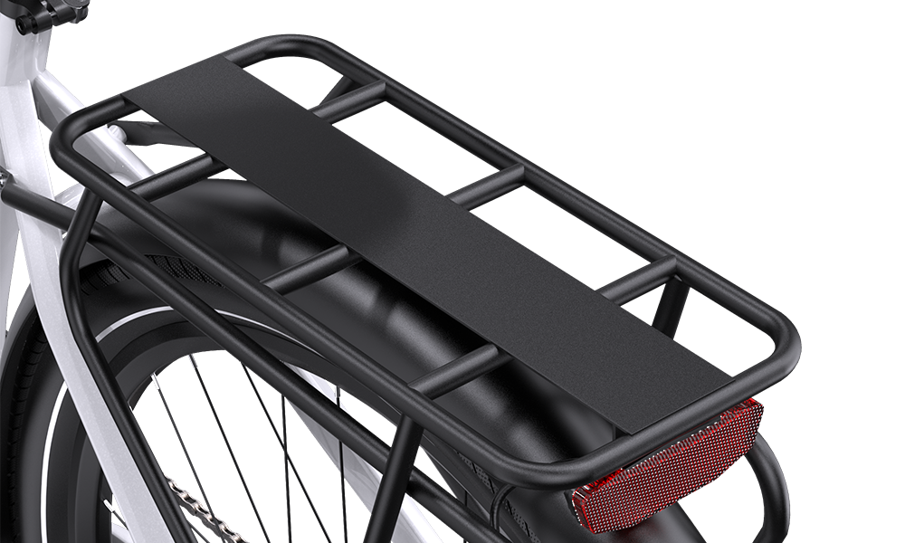 Sturdy rear rack offers extra storage space for your essentials — perfect for daily commuting or weekend adventures.