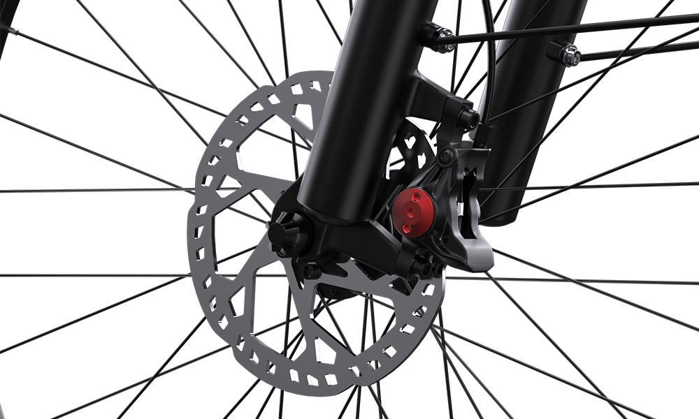 Experience superior stopping power with OT05 city e-bike hydraulic disc brakes. These brakes offer enhanced control and reliability, ensuring a safer ride in various conditions, whether you're navigating busy city streets or descending on steep trails.