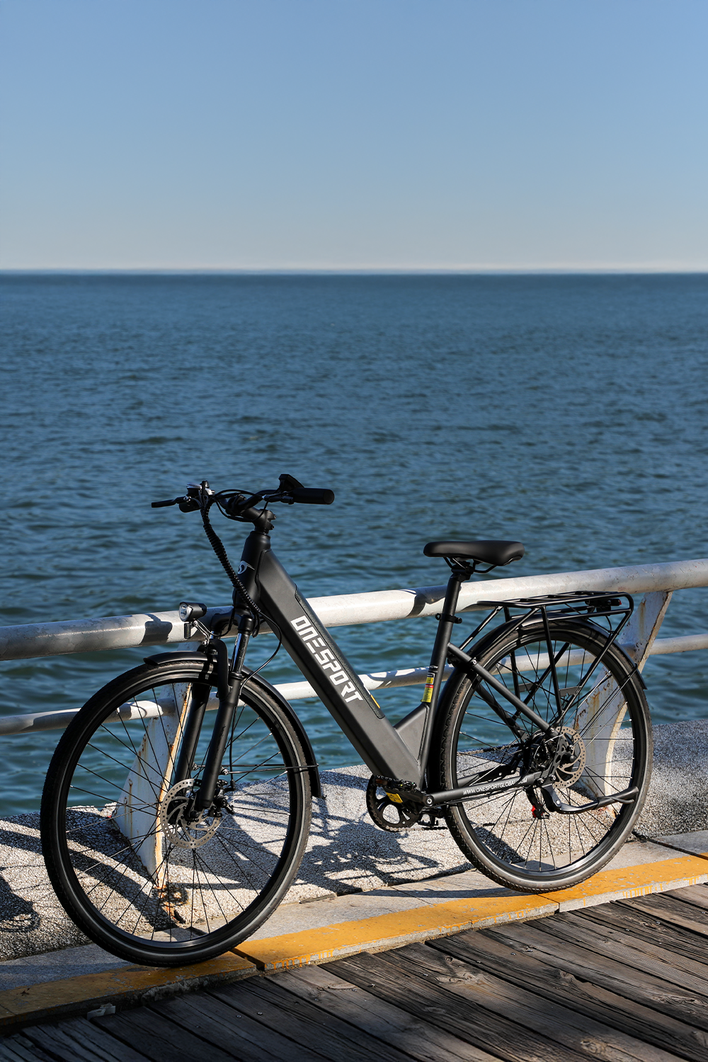 Equipped with a shock-absorbing front fork, the OT12 urban E bike ensures a smoother ride by effectively dampening bumps and vibrations, particularly on rough or uneven surfaces, enhancing comfort and control.